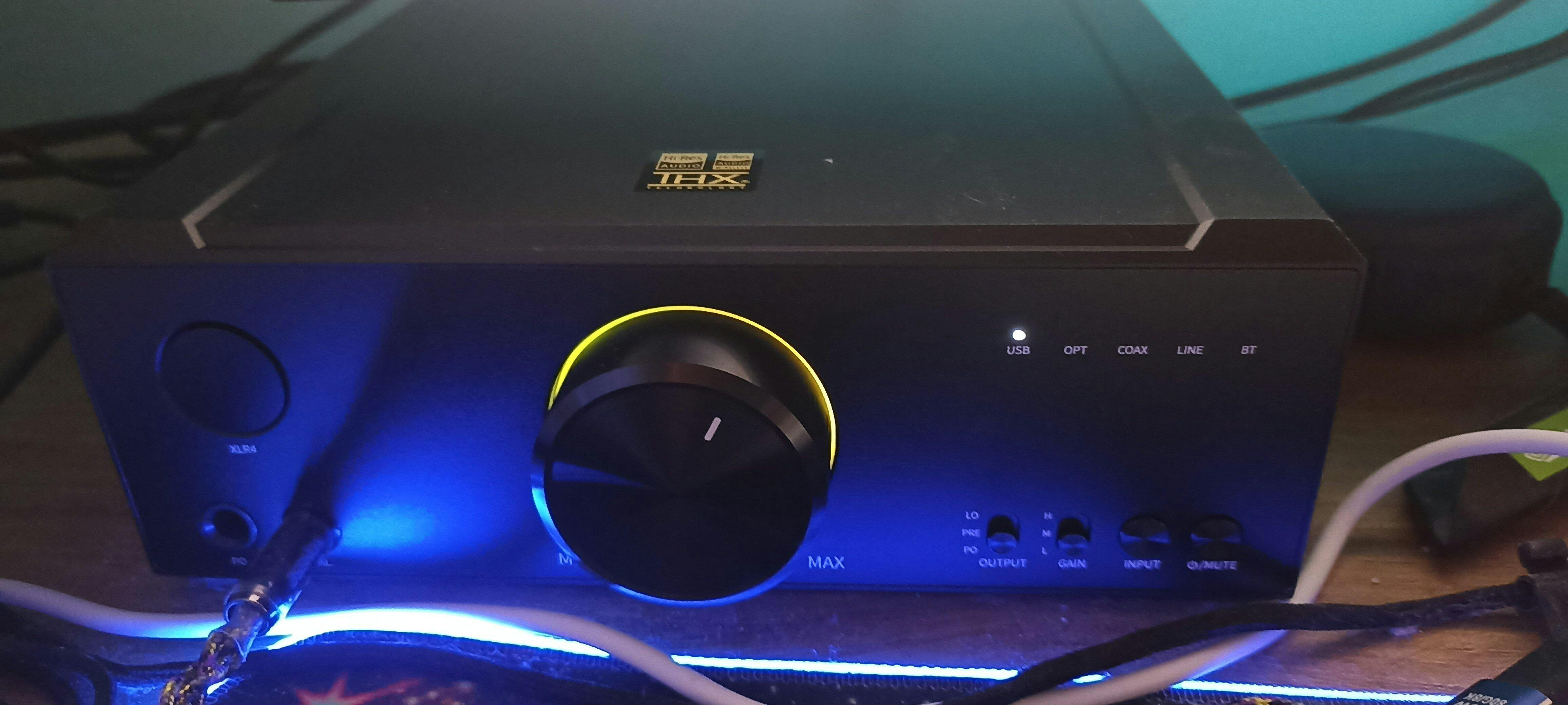 • RGB lights around the knob indicate the current audio sampling rate and Bluetooth codec