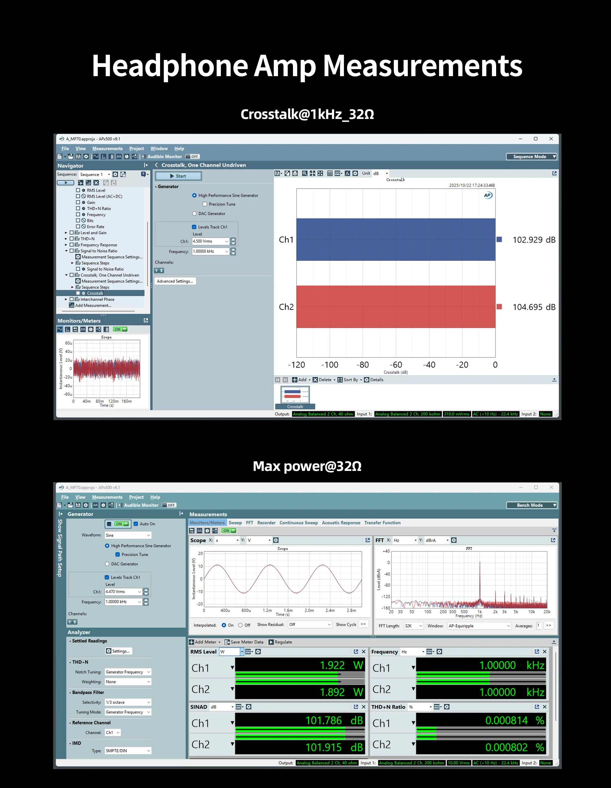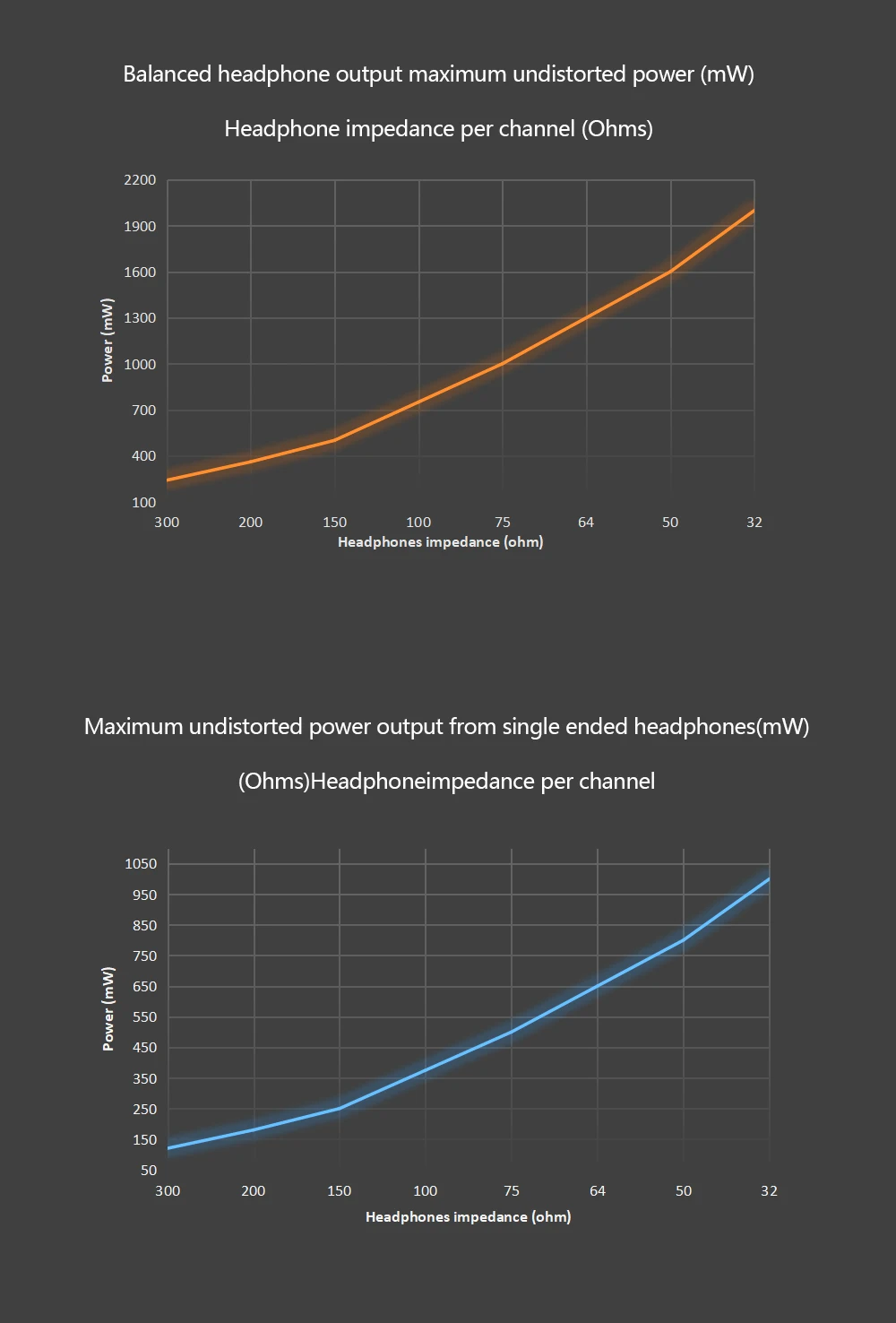 Maximum Output Power (Clipping): ≈ 2000mW (32Ω, balanced)