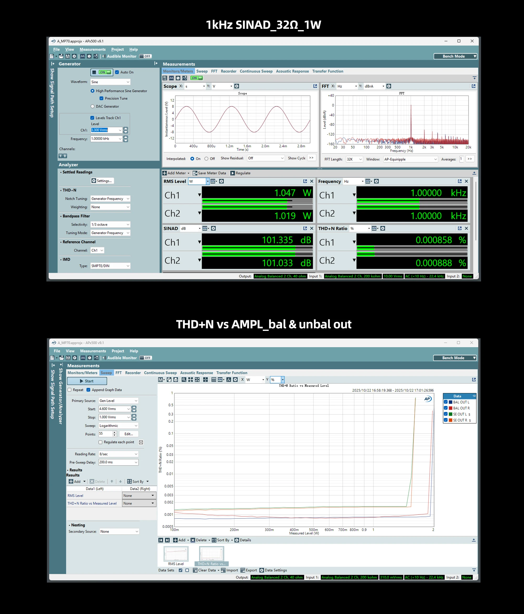 THD+N:<0.0005%(1kHz,1000mW into 32Ω)