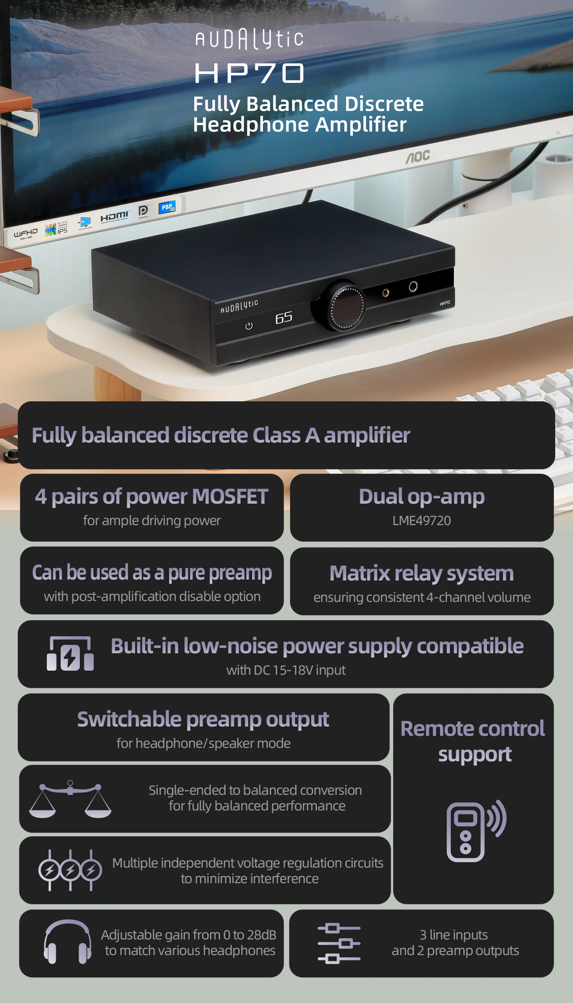 Gustard/Audalytic HP70 Fully Balanced Discrete Headphone Amplifier LME49720 Double op-amp 4.4mm Balance 6.35mm Single-ended