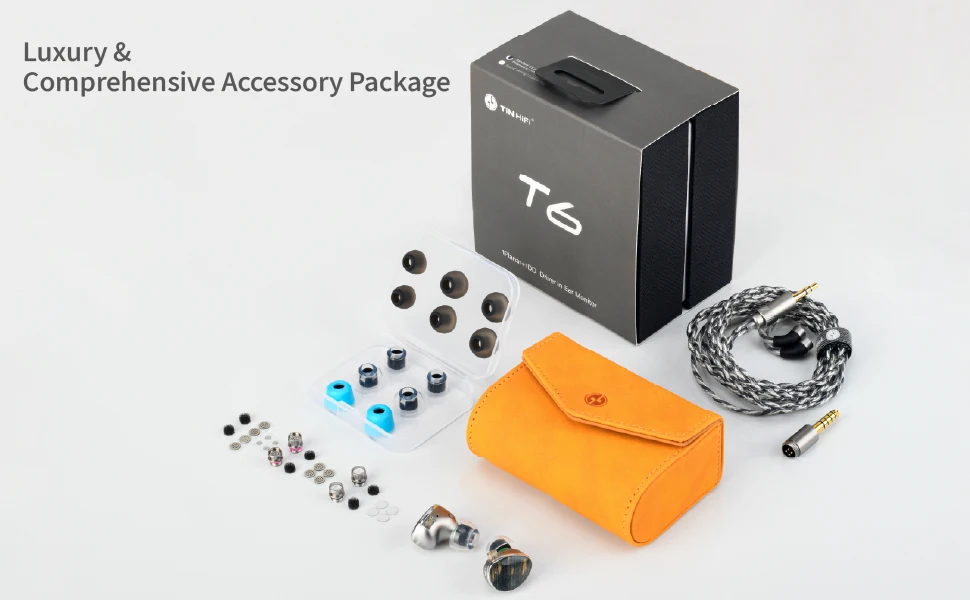 TINHIFI T6 is a high-end flagship wired Hi-Fi in-ear monitor featuring a flagship dynamic driver paired with a high-performance planar driver (1DD + 1 Planar). Built with a CNC-milled aerospace-grade aluminum acoustic chamber and a natural solid wood faceplate, T6 delivers exceptional sound coherence, fast transient response, and refined tonal balance. With three interchangeable acoustic nozzles offering three tuning styles, a modular 2PIN QDC cable supporting 3.5mm and 4.4mm connections, and premium liquid silicone ear tips, T6 is designed for audiophiles, gamers, and studio monitoring applications seeking precision, control, and luxury craftsmanship.