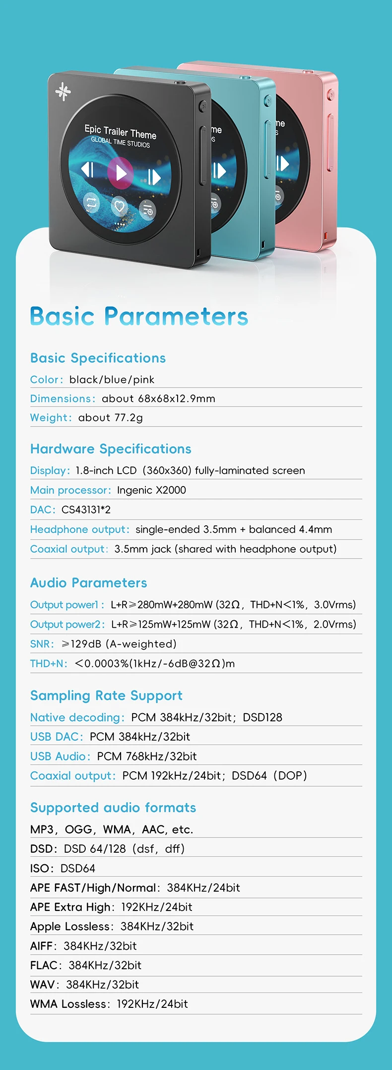 | Supported Audio Formats | FLAC, WAV, DSD, ALAC, APE, MP3, AAC, WMA, OGG, and more |