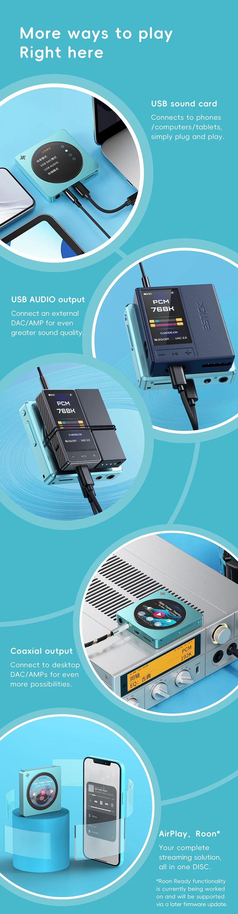 Experience the future of portable audio—innovative circular design meets flagship DAC performance with dual outputs and cutting-edge Bluetooth 5.4 LDAC.