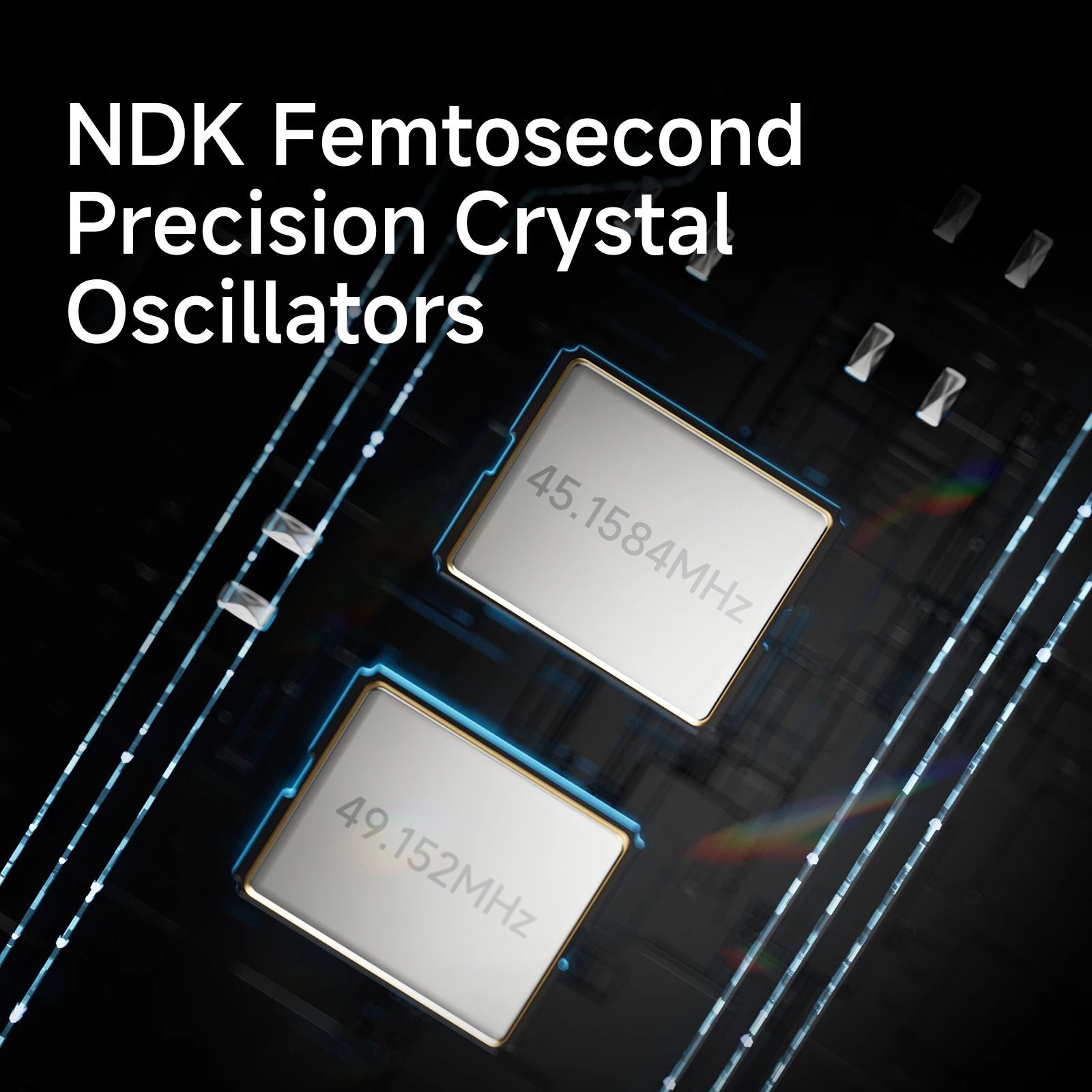 45.1584MHz and 49.152MHz femtosecond precision crystal oscillators onboard