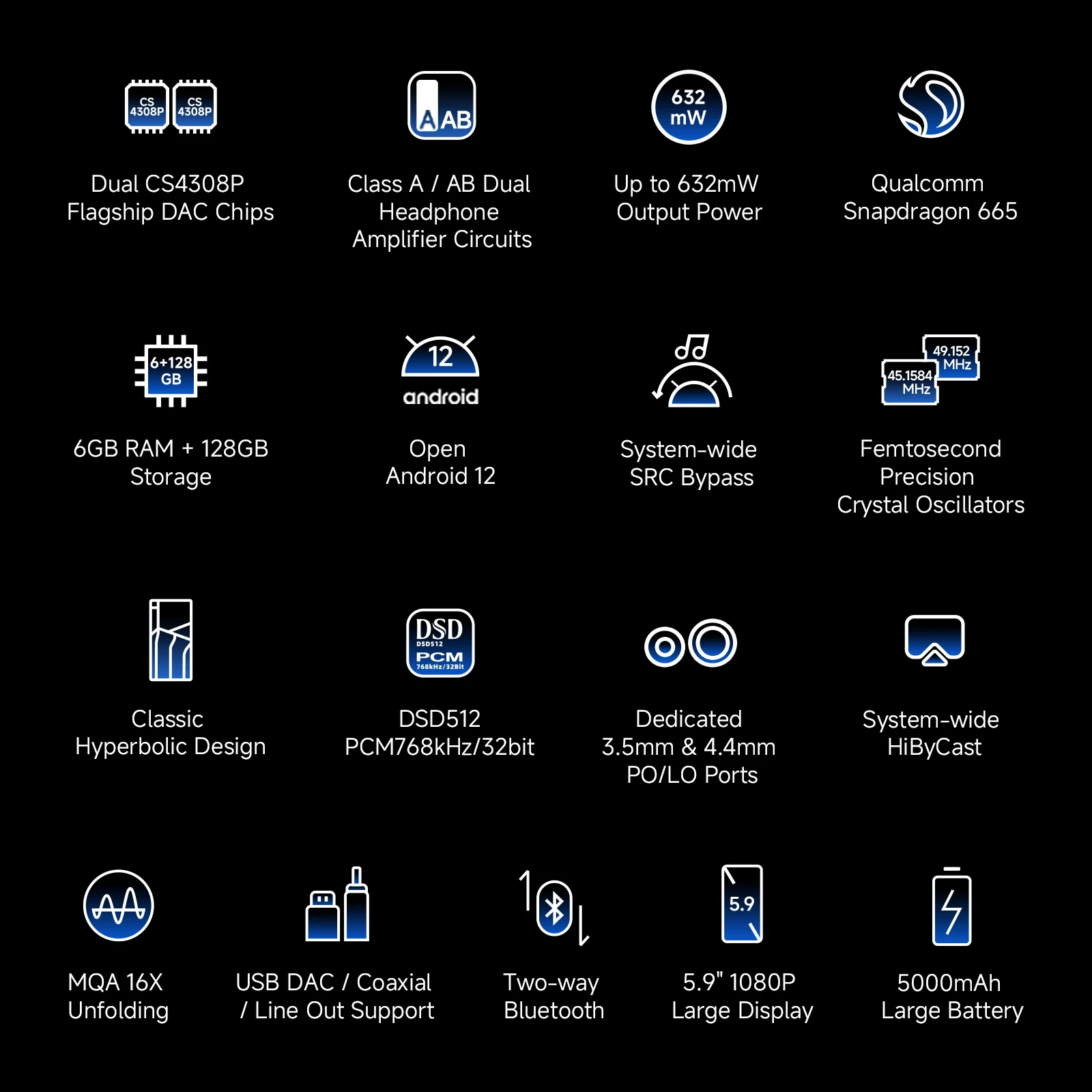 Printed on a flagship-class 11nm lithography process, this SoC yields higher computational and graphics abilities. In conjunction with HiBy's many years of software and hardware integration experience, a high level of fluidity and responsiveness is achieved for all music app usage and more besides.