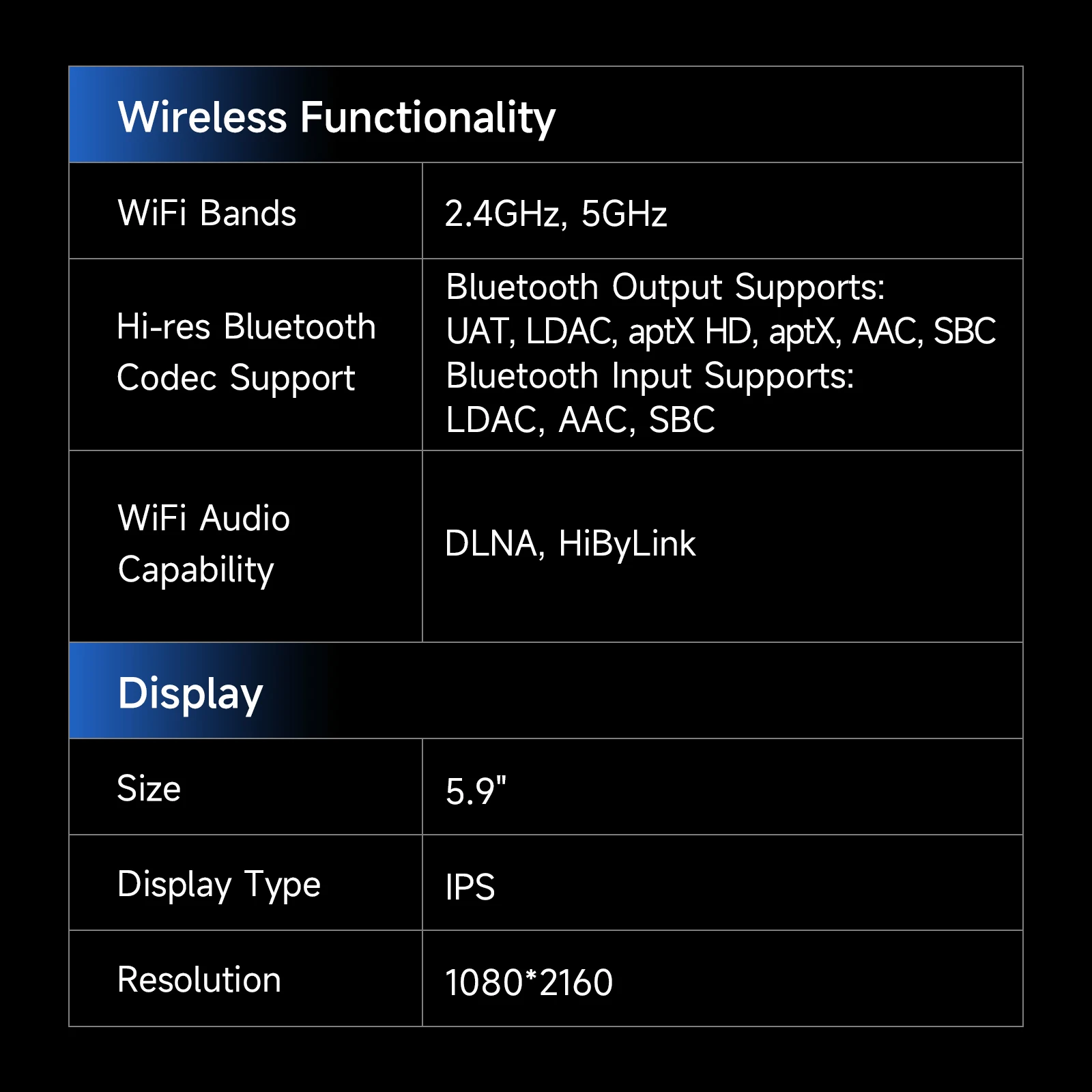 The industry's first portable HiFi player featuring Cirrus Logic's flagship CS4308P DAC - now in an advanced dual-chip configuration (twin CS4308P DACs working in parallel). This groundbreaking architecture delivers exceptional audio resolution and unparalleled driving power.