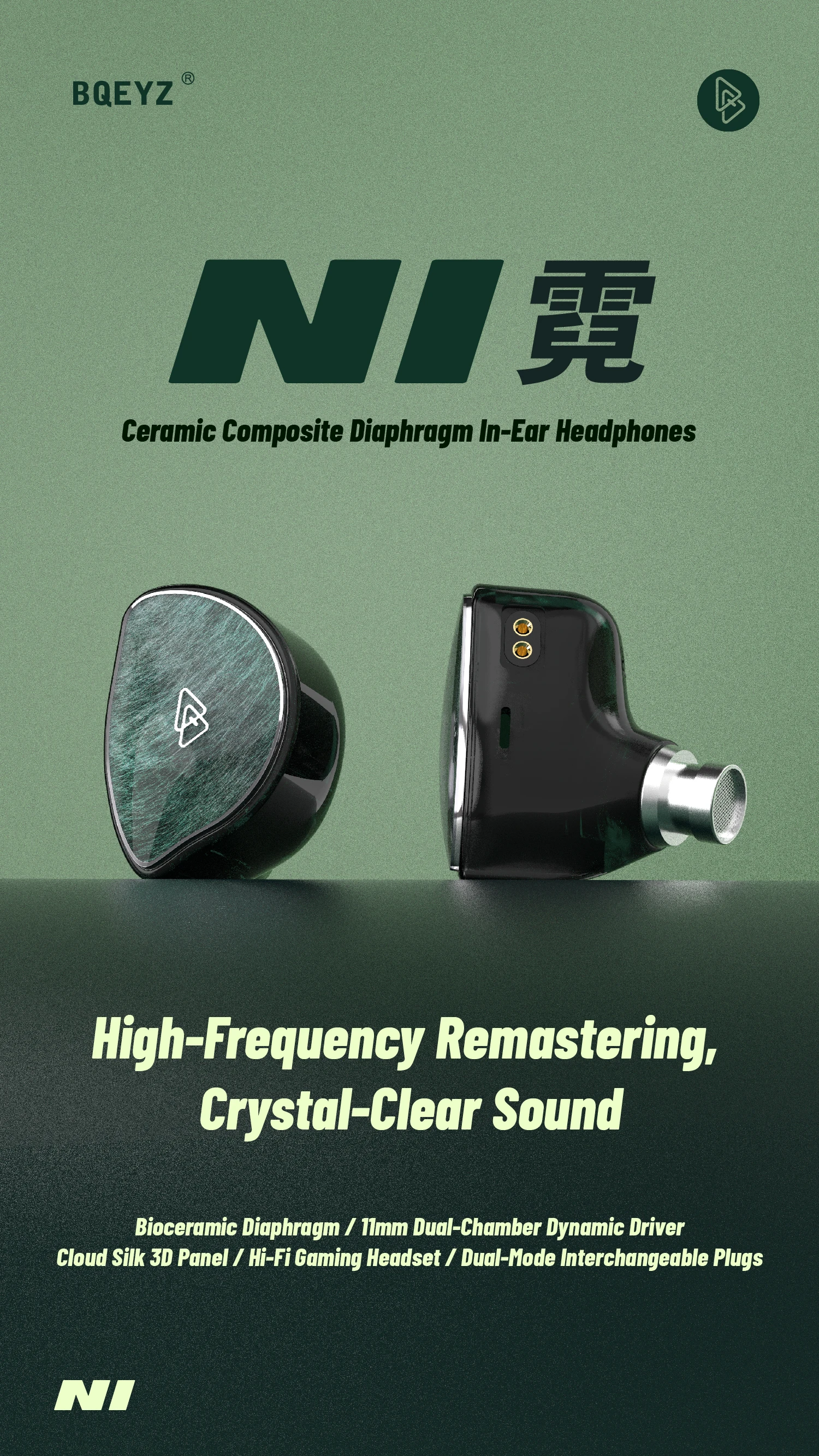 BQEYZ NI (Niji) — Ceramic-Composite Dynamic IEM with Interchangeable 3.5 mm / 4.4 mm Plugs