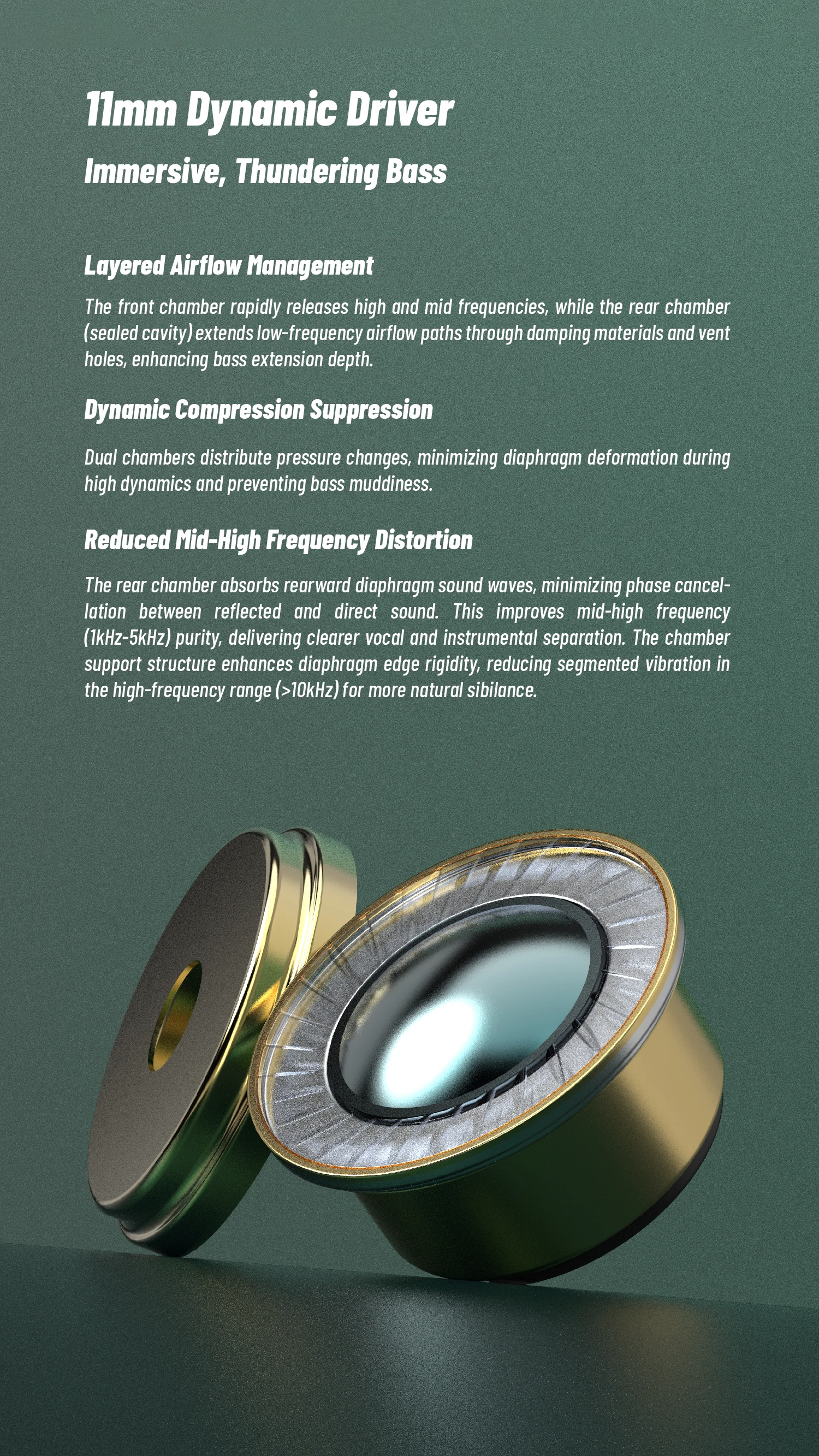 • Dynamic Compression Control: Split chambers distribute pressure changes to keep the diaphragm linear during high SPL passages.