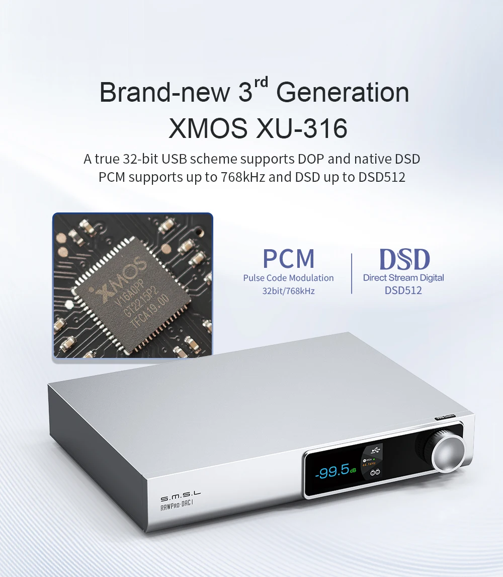 • Advanced USB Technology: Equipped with the XMOS XU-316 USB solution, supporting true 32-bit USB audio, DoP, and native DSD.