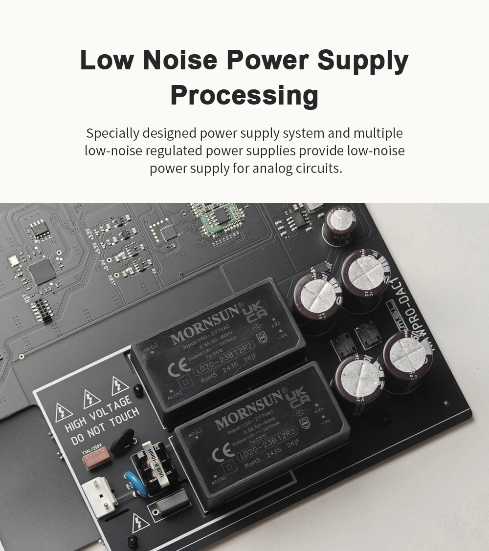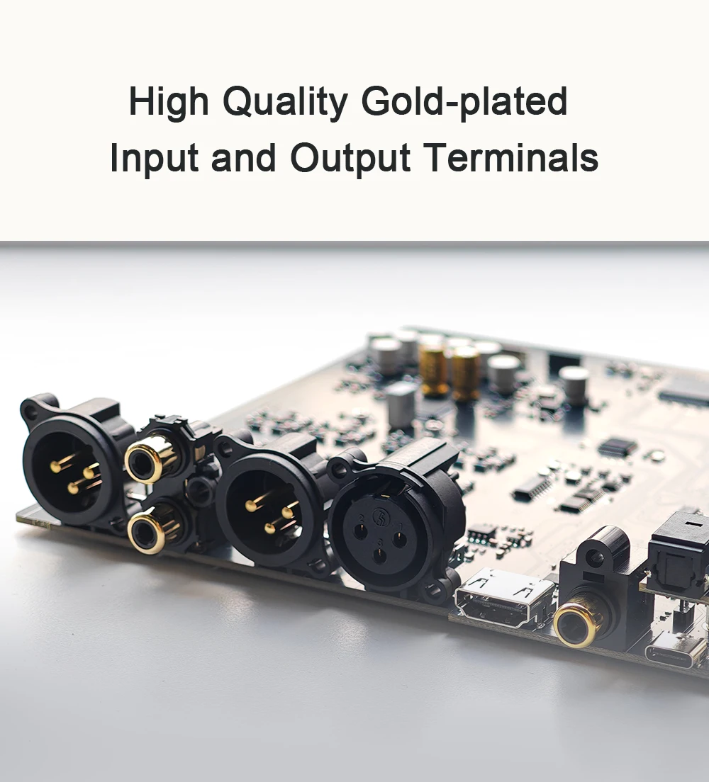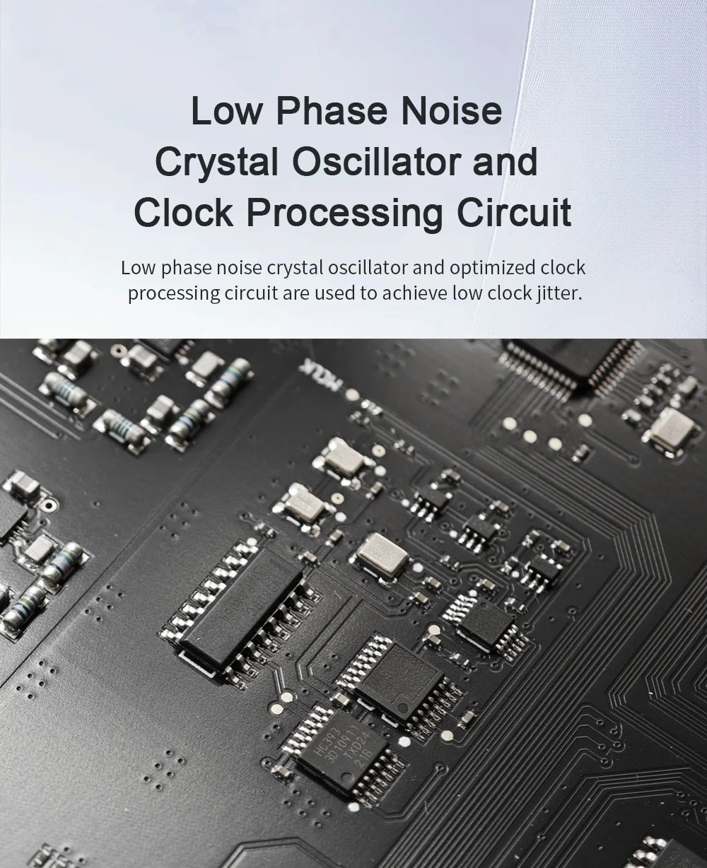 • Precision Clock and Power Design: Low-phase noise crystal oscillator with optimized clock circuits for minimal jitter and enhanced audio clarity.