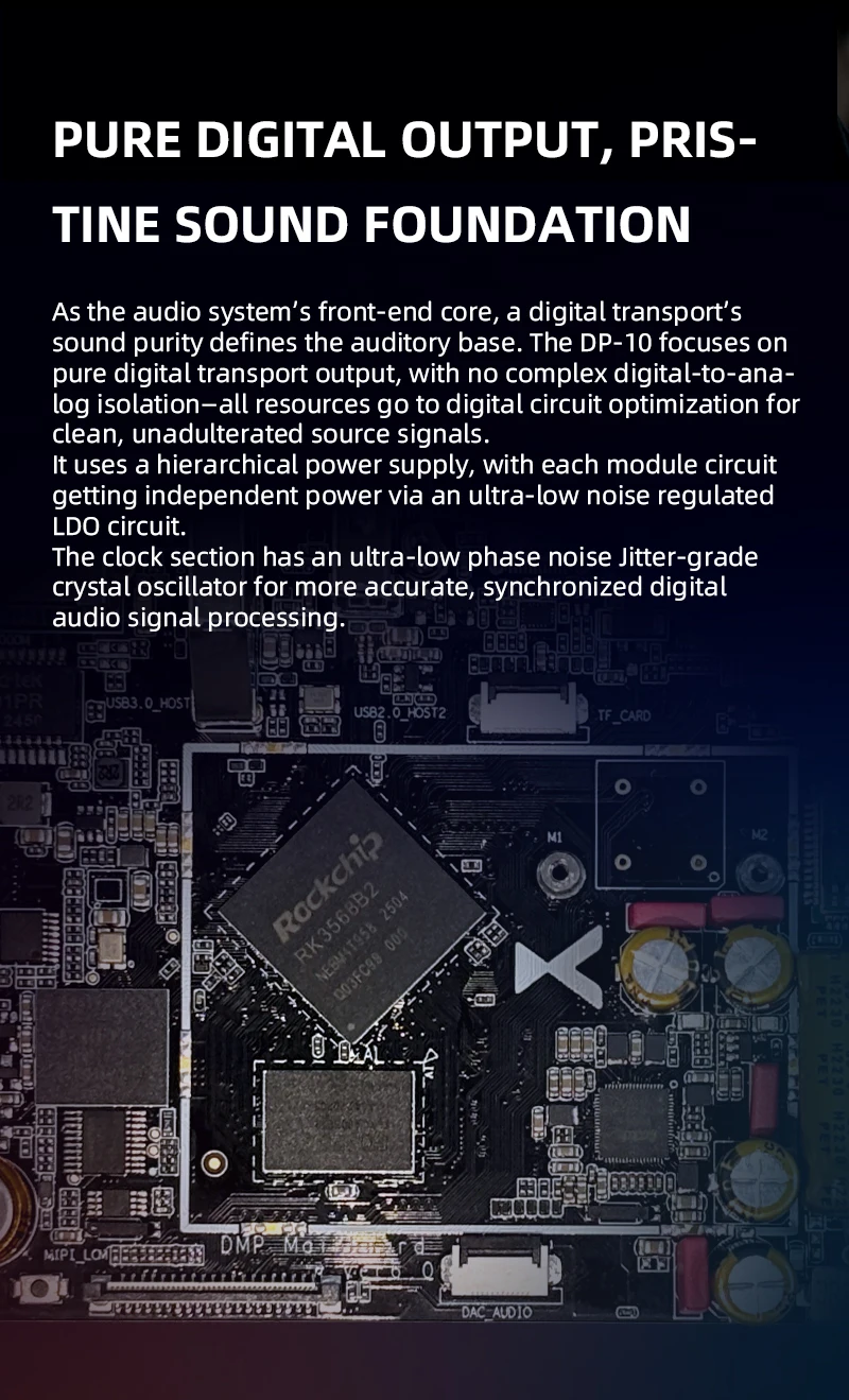 Experience crystal-clear audio with the XDUOO DP-10's pure digital output, ensuring high-fidelity sound quality.