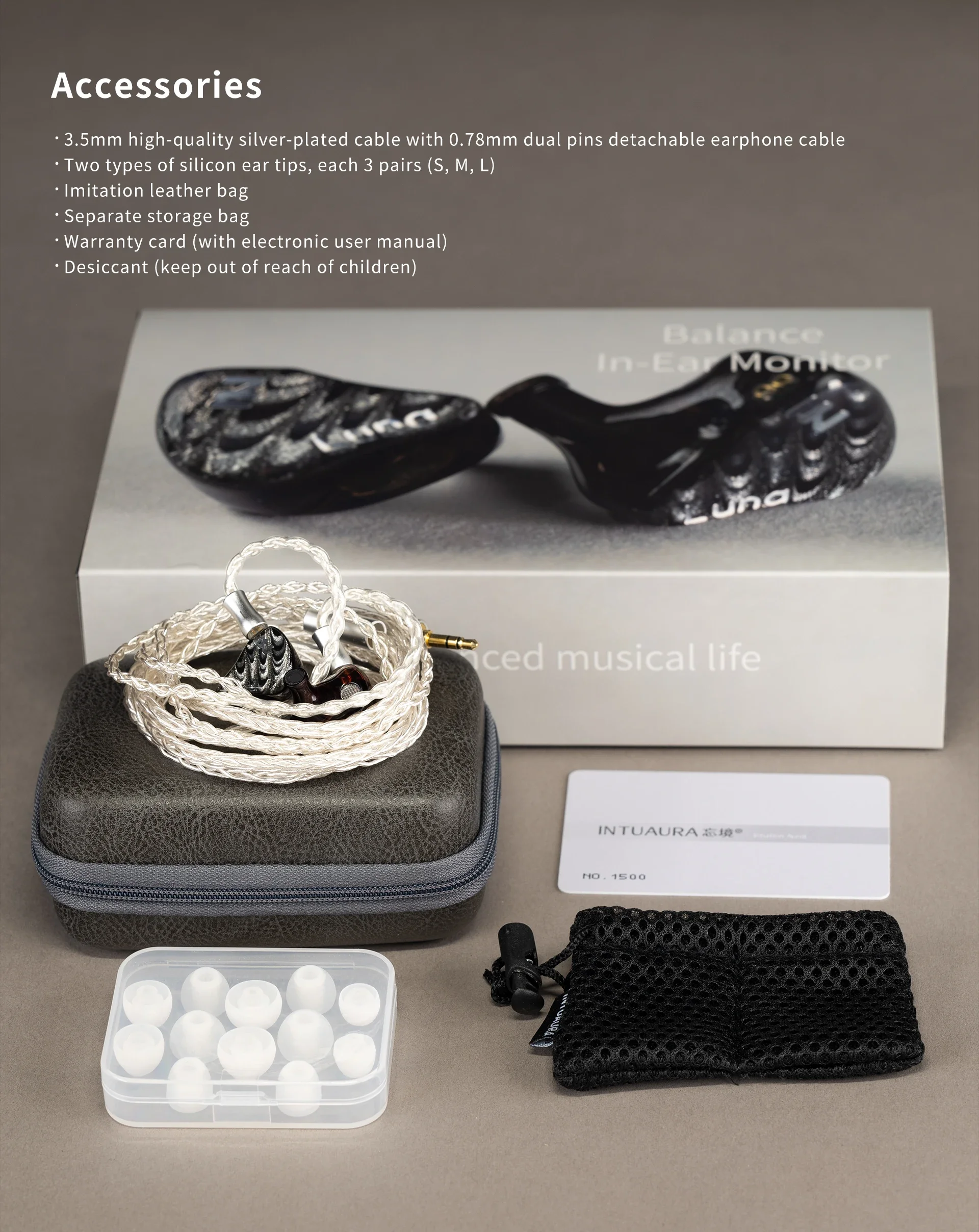 INTUAURA Balance HIFI Wired In-ear Earphone Ultra-Wideband Dynamic Driver with Silver-Plated 0.78 mm Dual-Pin Detachable Cable