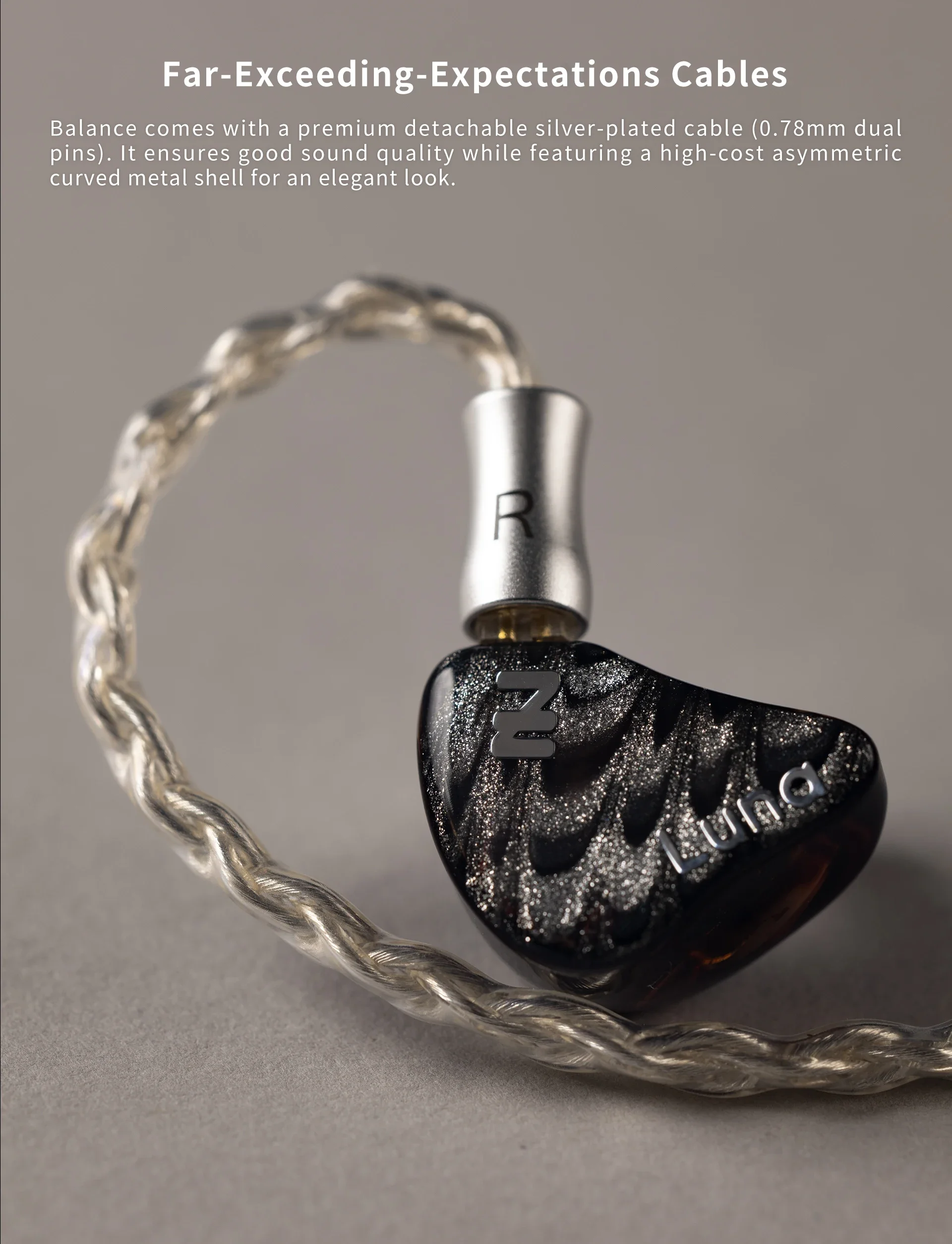 Included is a silver-plated, 0.78mm dual-pin cable housed in an asymmetric curved metal shell. It not only preserves signal integrity but also adds a touch of refined elegance to your setup.