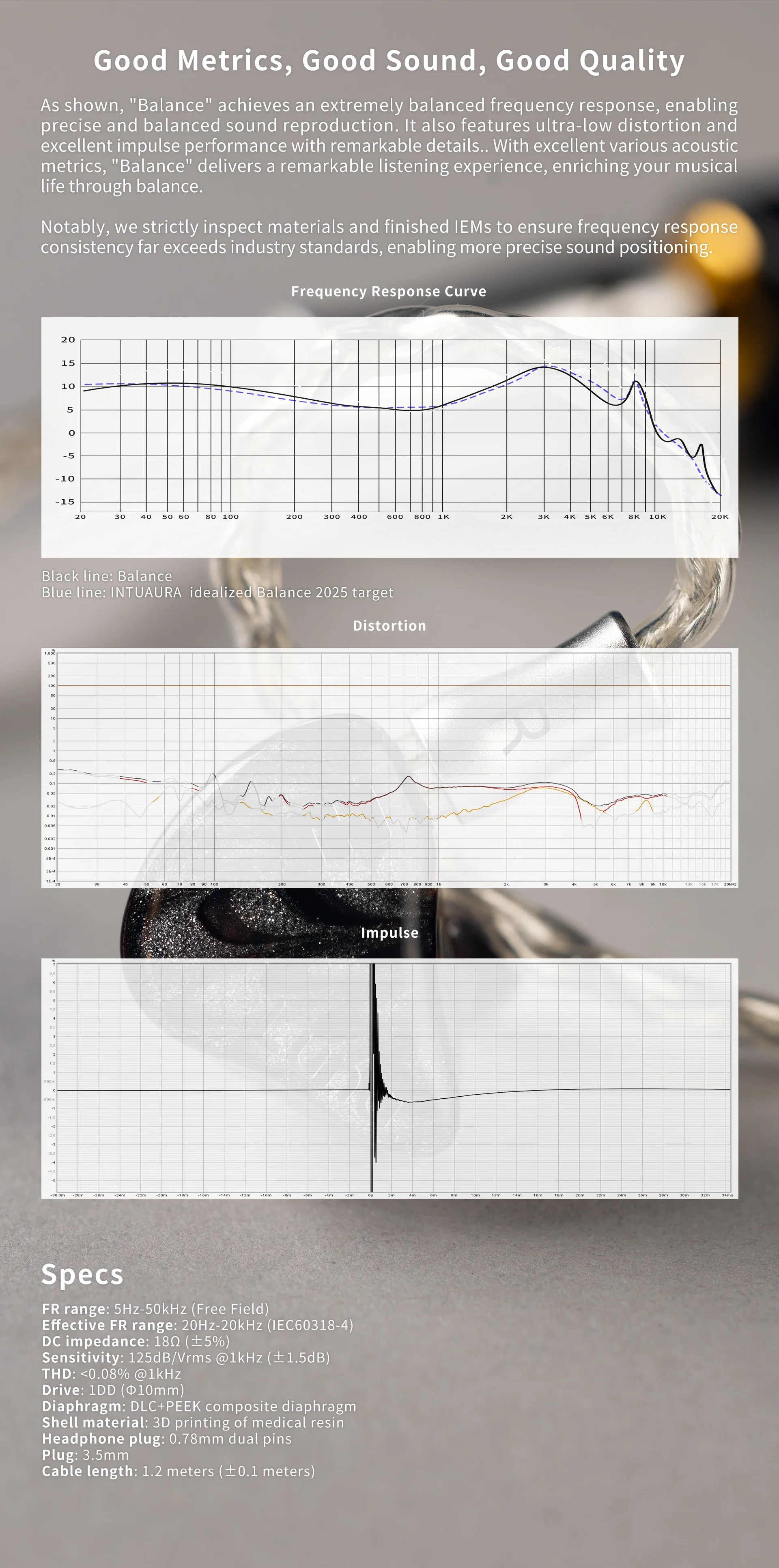 Balance IEMs undergo rigorous frequency-response testing to achieve ultra-low distortion and rapid impulse performance that far exceed industry norms. Each unit is hand-inspected to guarantee channel matching and reliable sound positioning.