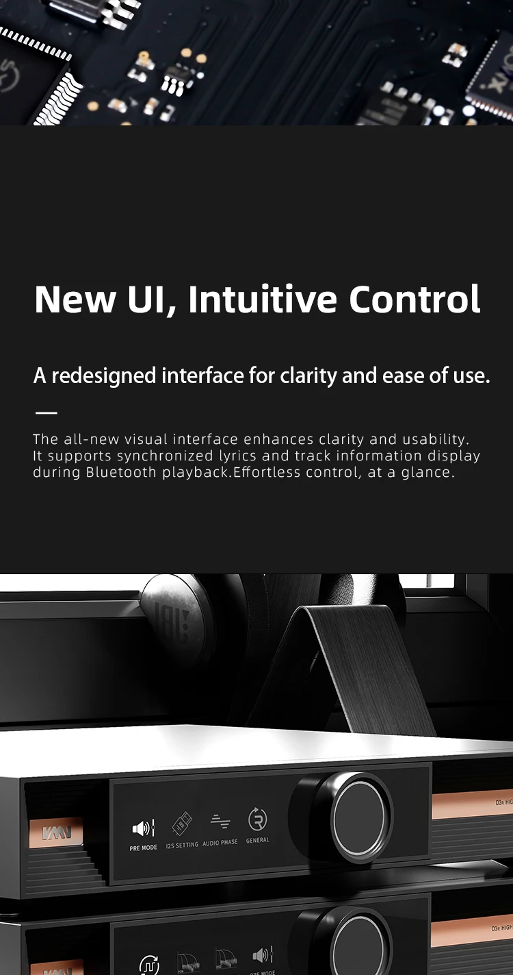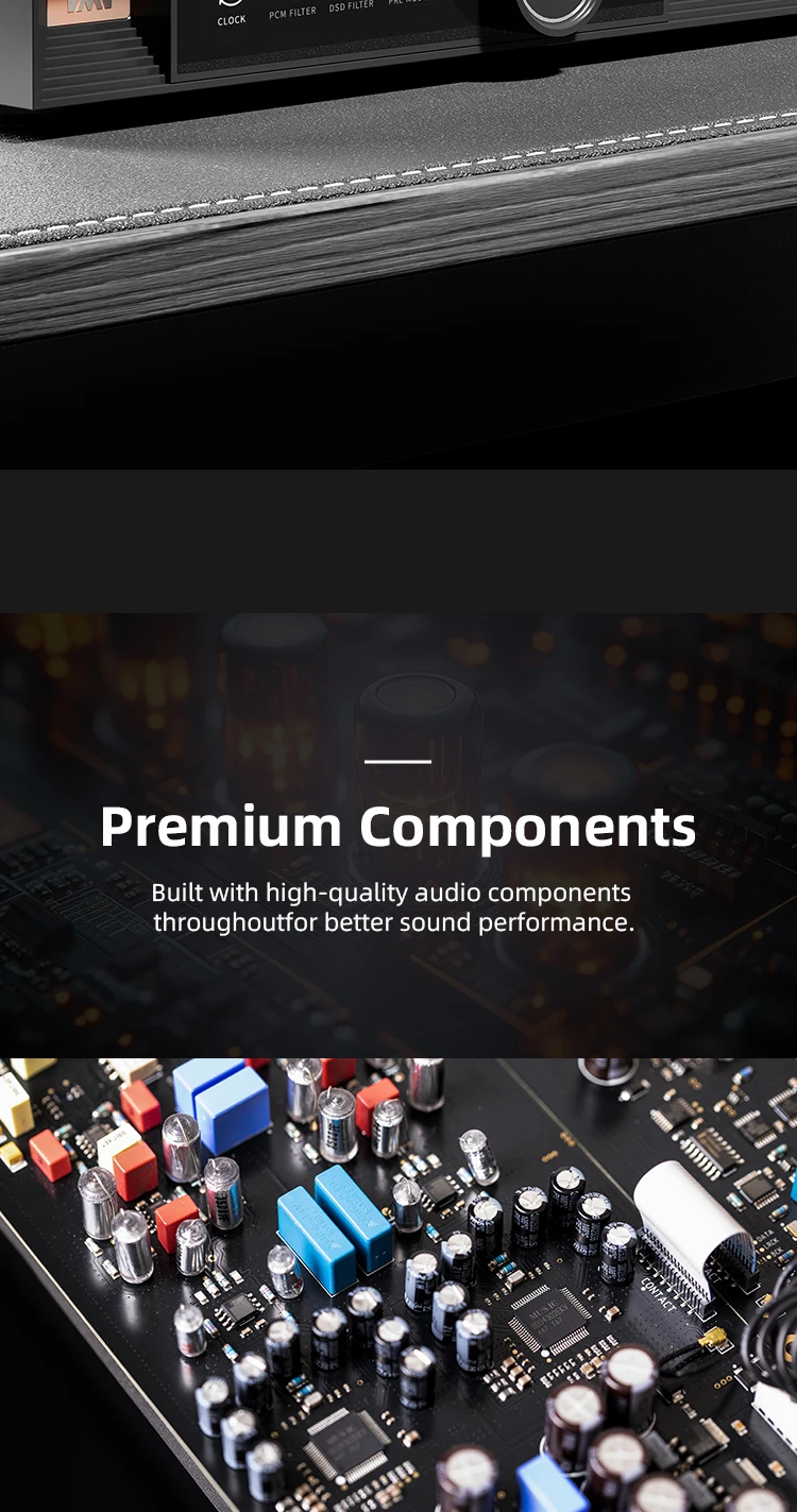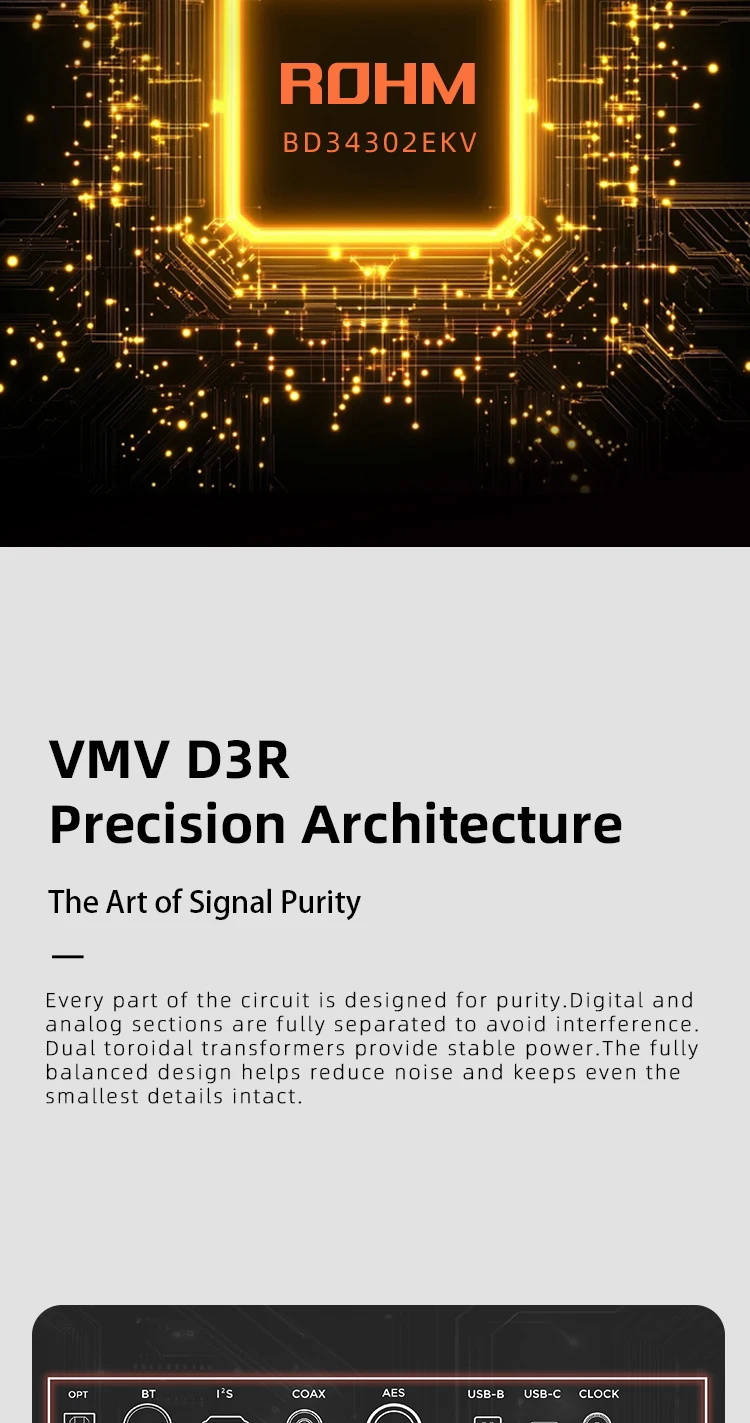 • Dual ROHM BD34302EKV DAC Chips: A dual-chip configuration delivers superior channel separation, a lower noise floor, and reference-level signal accuracy — the foundation of truly transparent audio reproduction.