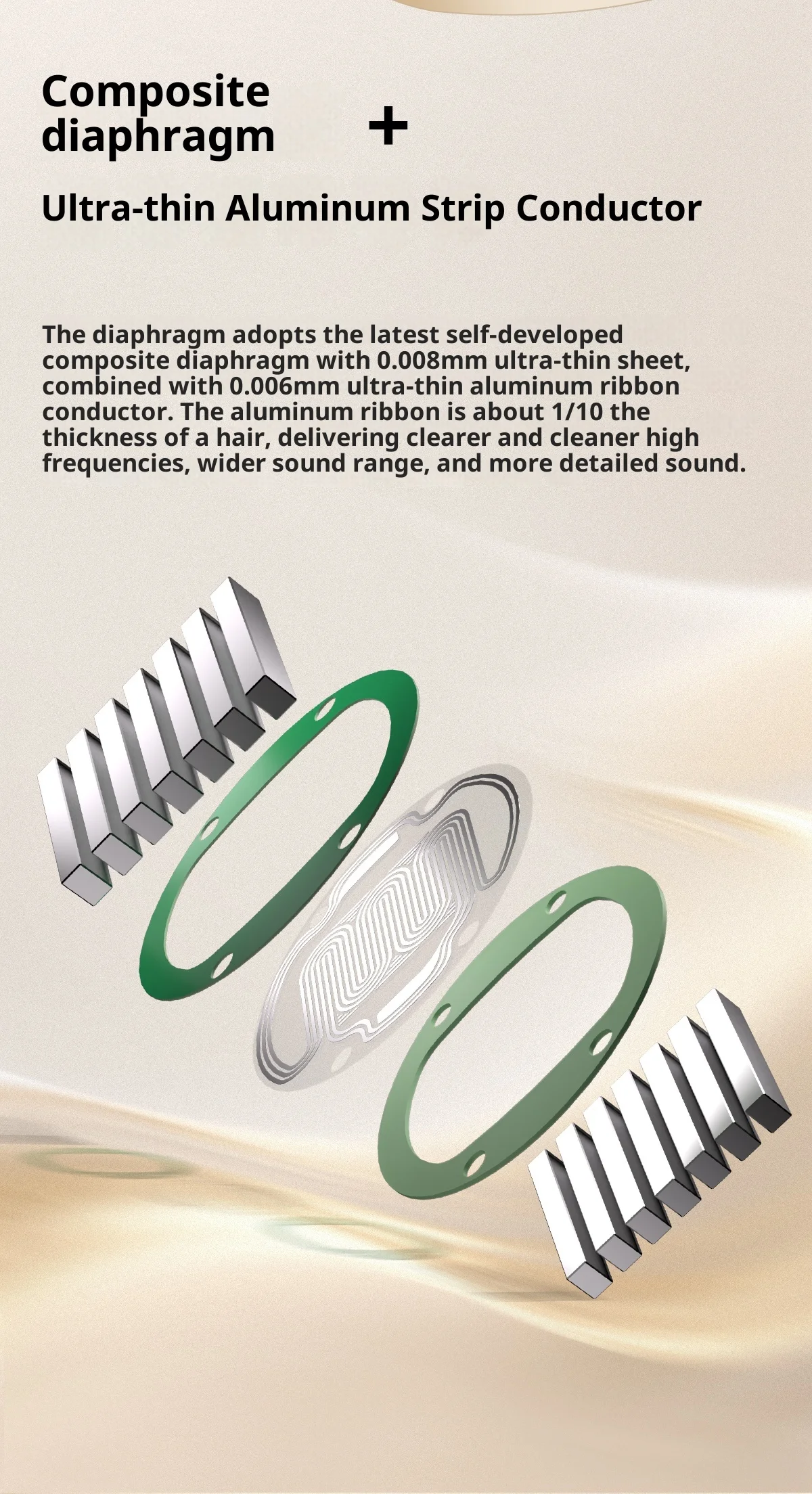 • High-End Hybrid Drivers: 14.5mm flat diaphragm driver for clear highs, deep bass, and a well-defined soundstage.