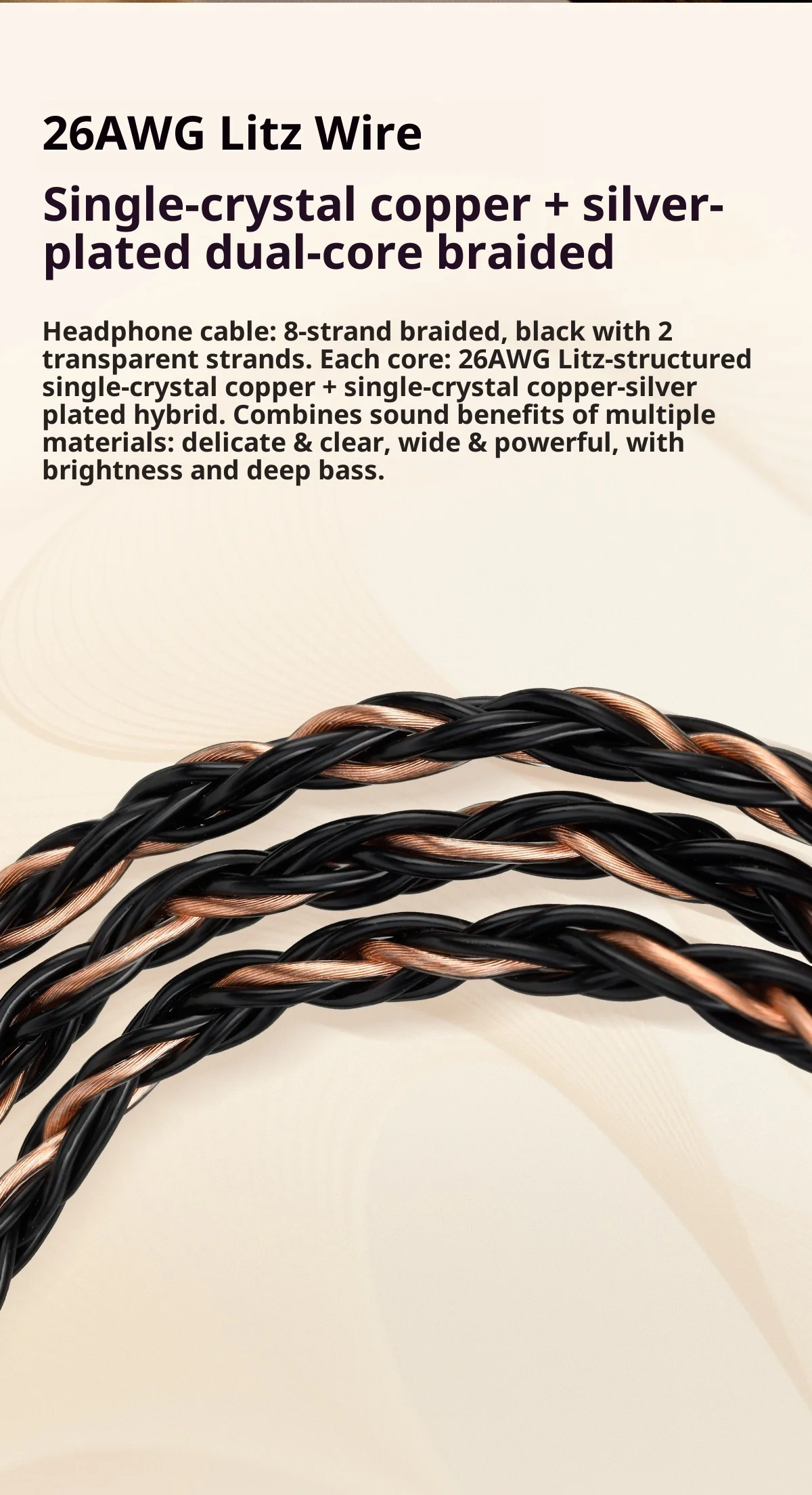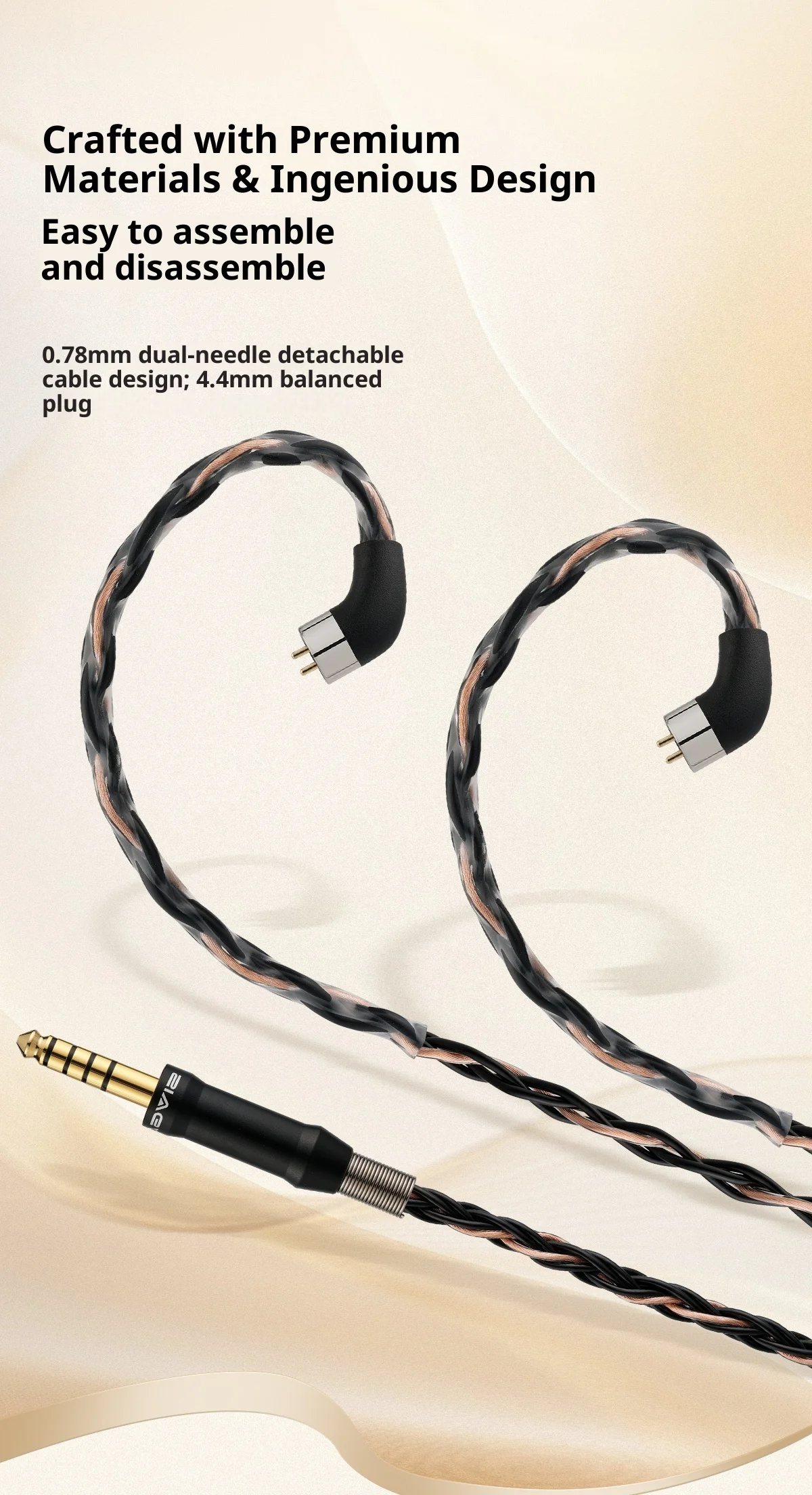 • High-Fidelity Cable: 8-strand braided single-crystal copper and silver-plated hybrid Litz cable with 4.4mm balanced plug for enhanced sound clarity.