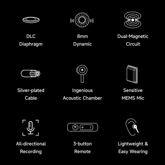 HiBy Digital XOE 8mm DLC Diaphragm Dynamic Driver In-Ear IEM Earbuds with mic
