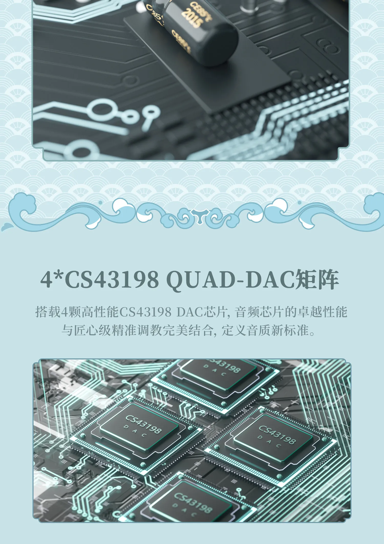 • Quad DAC Architecture - Four CS43198 flagship DAC chips deliver exceptional detail, dynamics, and ultra-low distortion