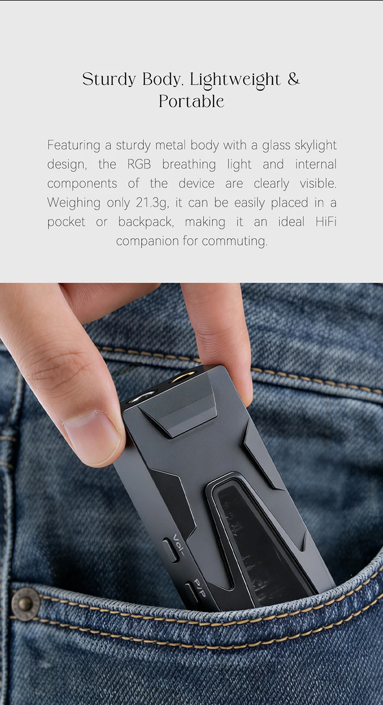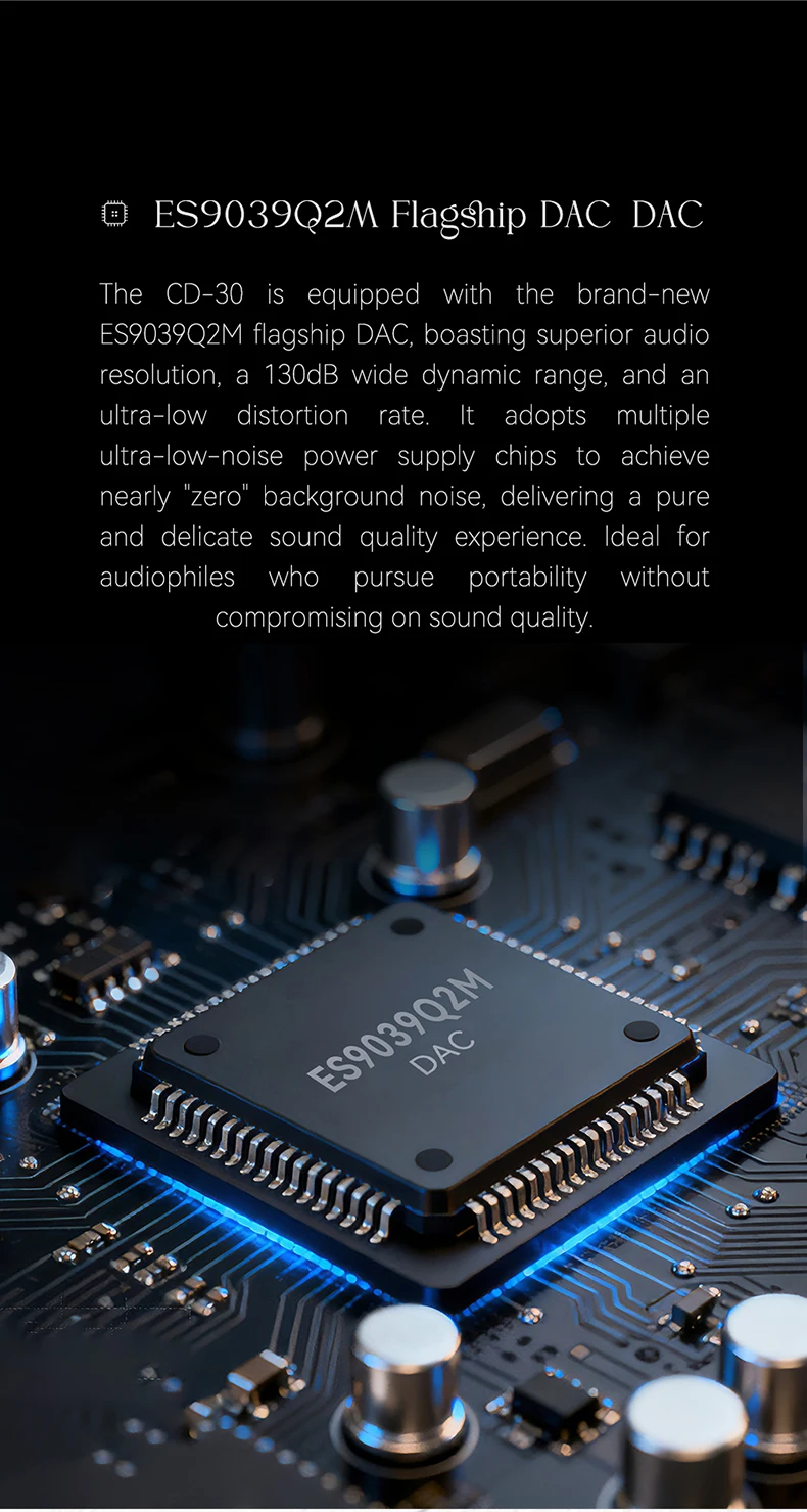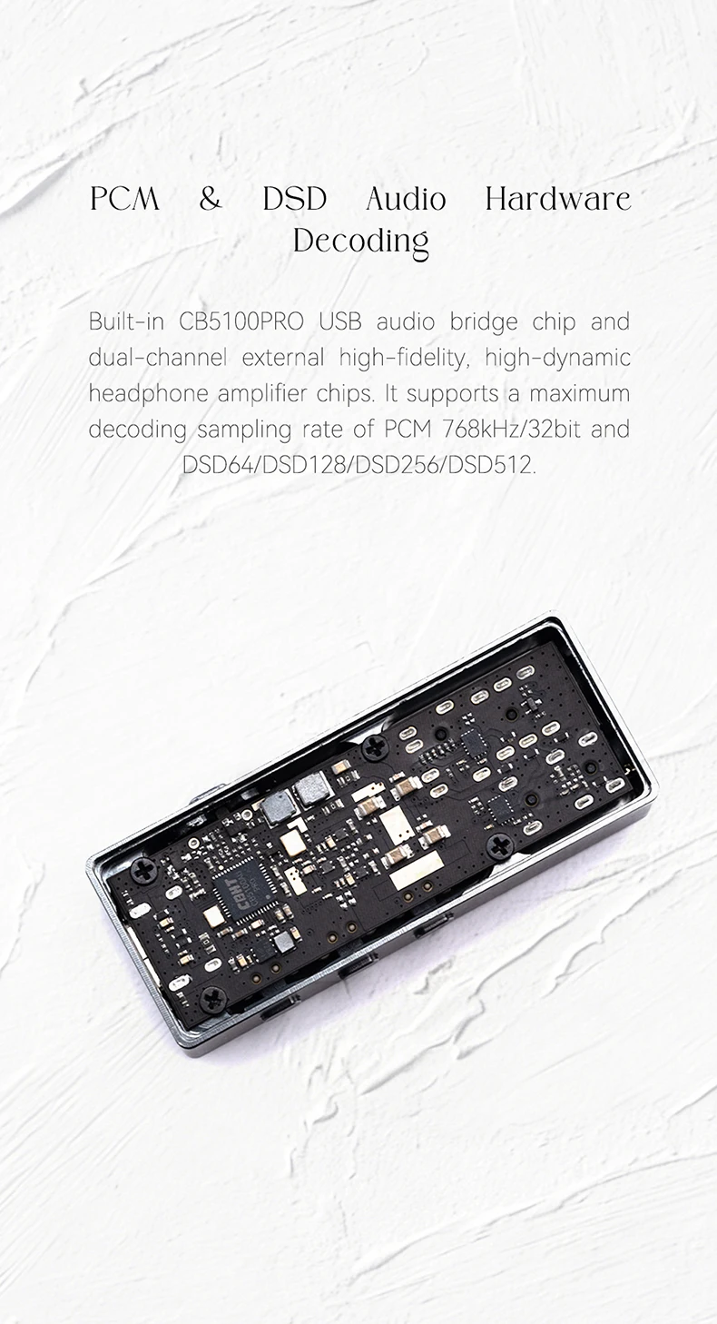 • ESS ES9039Q2M DAC Chip — Flagship-Grade Decoding: The ES9039Q2M is one of ESS Technology's most capable portable DAC chips, delivering ultra-low noise, high dynamic range, and precise channel separation. It handles the full range of modern hi-res formats without compromise.