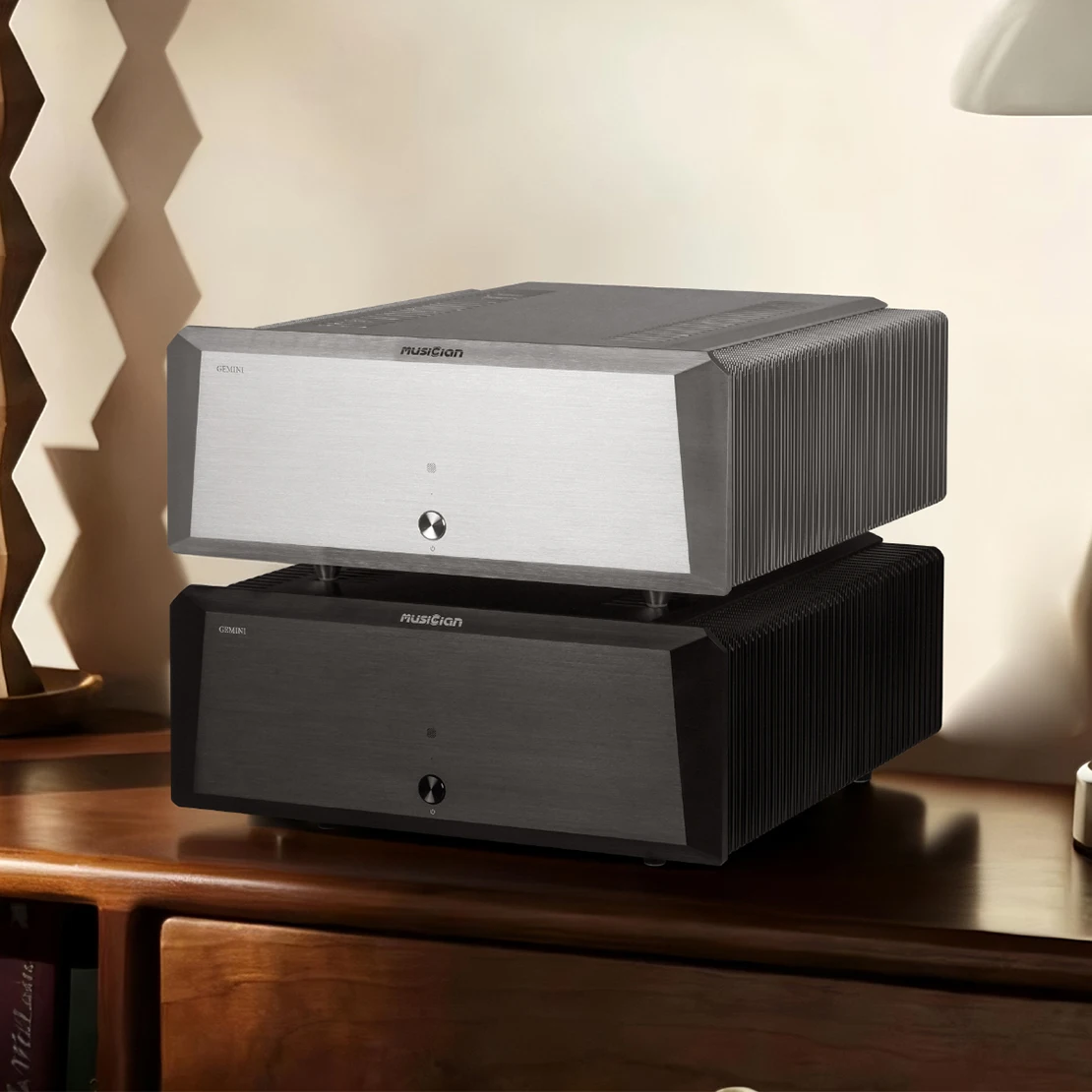 The MUSICIAN GEMINI is a high-fidelity stereo power amplifier engineered to be the definitive final stage in a serious hi-fi system. Built on a pure Class AB topology with dual-mono construction, the GEMINI delivers complete channel separation, a blacker noise floor, and effortless control over demanding loudspeaker loads. An oversized toroidal transformer provides the current reserve needed for dynamic, transient-rich music, while balanced XLR and unbalanced RCA inputs ensure compatibility with virtually any preamplifier or DAC. Available in Silver or Black with 100V and 220V voltage options, the GEMINI is built for global use and pairs naturally with the MUSICIAN PEGASUS and AQUARIUS DAC.