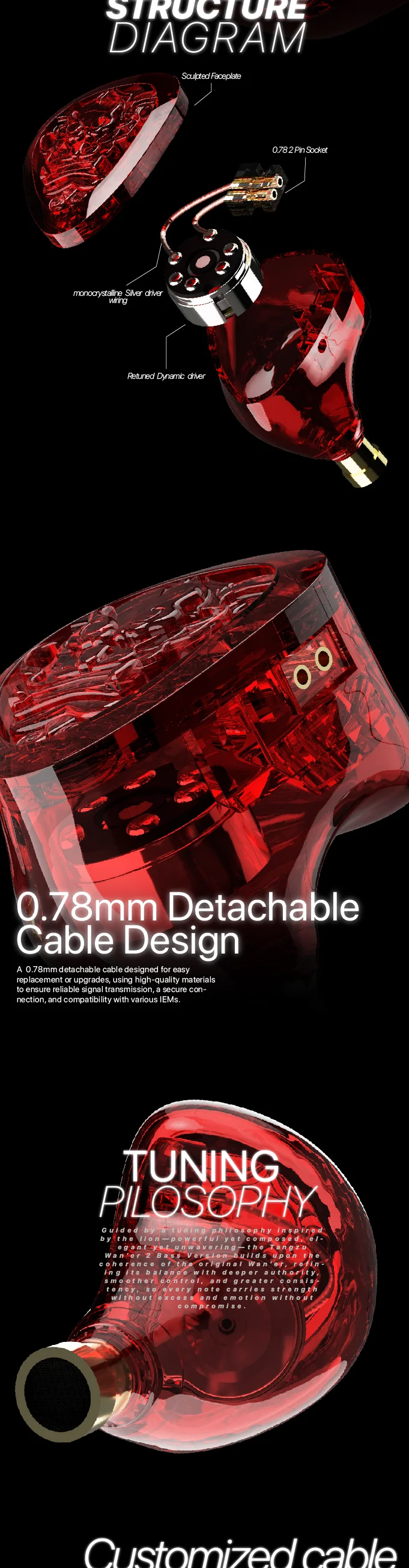 The TANGZU WANER SG 2 Red Lion Edition delivers exceptional clarity and musicality through its meticulously engineered 10mm PET single dynamic driver. Designed for discerning listeners who demand both performance and portability, this limited edition IEM combines refined acoustics with premium build quality.