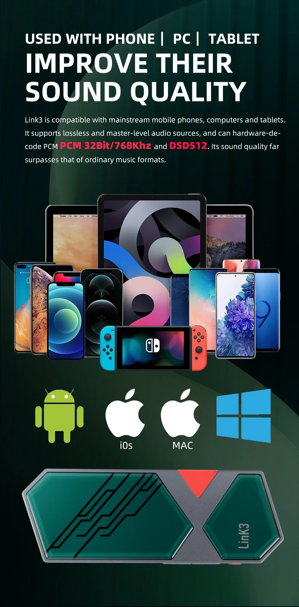 • Compact & Portable Dongle Design: Lightweight and pocket-sized, the LINK3 is the ideal portable source upgrade. Whether commuting, traveling, or at the desk, it transforms any USB-C device into a high-fidelity audio source.